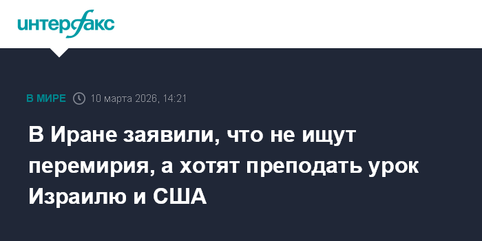 Москва. 10 марта. INTERFAX.RU - Тегеран не стремится к перемирию, а намерен преподать урок США и Израилю, чтобы предотвратить их нападения в будущем, заявил во вторник председатель парламента Ирана Мохаммад-Багер Галибаф.