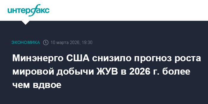 Минэнерго США снизило прогноз роста мировой добычи ЖУВ в 2026 г. более чем вдвое