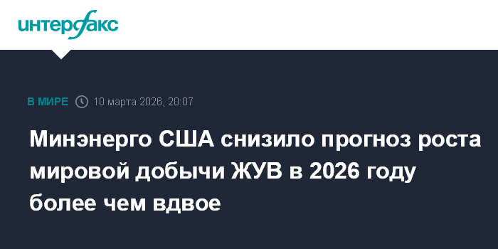 Минэнерго США снизило прогноз роста мировой добычи ЖУВ в 2026 году более чем вдвое