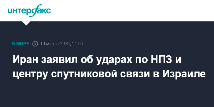 Иран заявил об ударах по НПЗ и центру спутниковой связи в Израиле