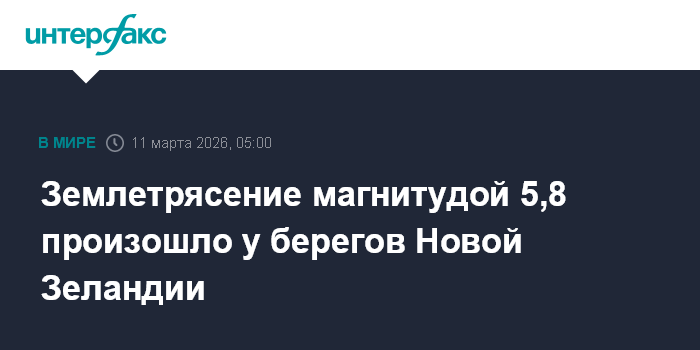 Землетрясение магнитудой 5,8 произошло у берегов Новой Зеландии