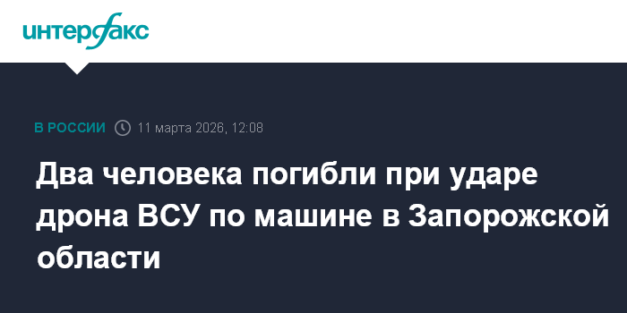 Москва. 11 марта. INTERFAX.RU - Два человека погибли около города Васильевка Запорожской области в результате атаки беспилотника ВСУ на автомобиль, сообщил губернатор региона Евгений Балицкий в среду.