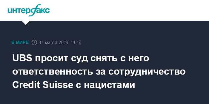 Москва. 11 марта. INTERFAX.RU - Швейцарский банк UBS AG попросил суд в США ограничить его ответственность по возможным новым искам к вошедшему в его состав в 2023 году Credit Suisse, в связи с возможными связями поглощенного банка с нацистами во время Второй мировой войны, передает Reuters.