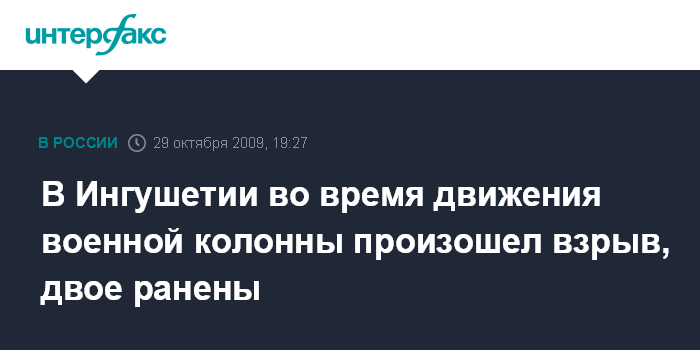 Назрань. 29 октября. INTERFAX.RU - В Ингушетии в районе города Карабулак в момент движения военной автоколонны сработало взрывное устройство, есть раненые.