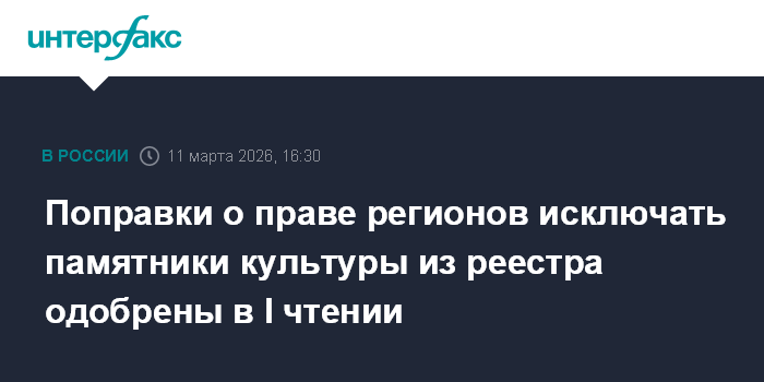 Поправки о праве регионов исключать памятники культуры из реестра одобрены в I чтении
