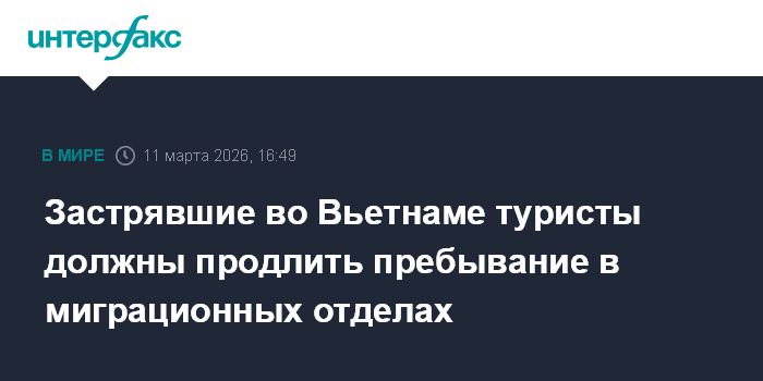 Москва. 11 марта. INTERFAX.RU - Министерство общественной безопасности Вьетнама предложило застрявшим из-за остановки авиасообщения в ближневосточных странах туристам продлить свое пребывание в региональных миграционных отделах, сообщает посольство России.