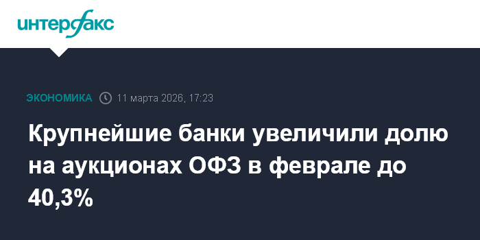 Крупнейшие банки увеличили долю на аукционах ОФЗ в феврале до 40,3%