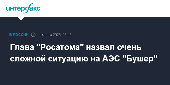 Москва. 11 марта. INTERFAX.RU - Ситуация на АЭС "Бушер" в Иране очень сложная и напряженная, но пока под контролем, сообщил глава "Росатома" Алексей Лихачев.