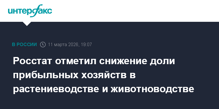 Москва. 11 марта. INTERFAX.RU - В 2025 году доля прибыльных хозяйств в двух основных отраслях сельского хозяйства - растениеводстве и животноводстве - составила 78,2% что на 3,4 п.п меньше, чем в 2024 году (81,6%), сообщил Росстат.