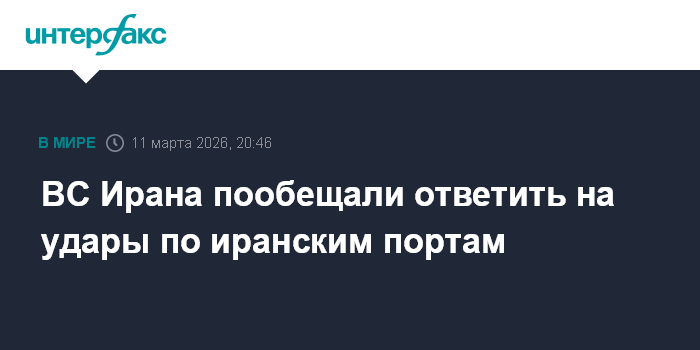 Москва. 11 марта. INTERFAX.RU - В командовании иранских вооруженных сил заявили, что Иран атакует порты в ближневосточном регионе, если его порты окажутся под угрозой, сообщает The National.