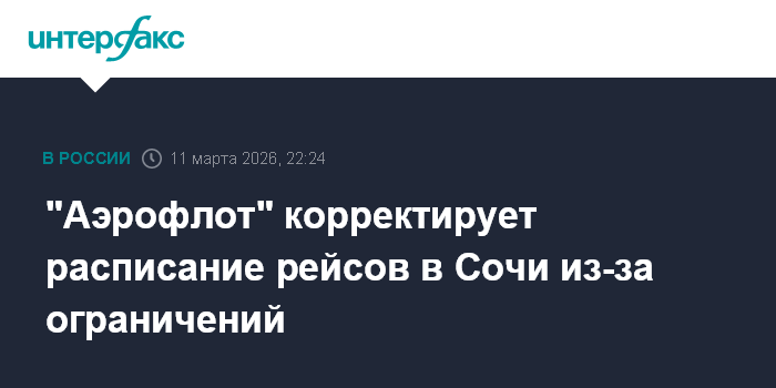 Москва. 11 марта. INTERFAX.RU - "Аэрофлот" вынужденно корректирует расписание рейсов в аэропорту Сочи из-за введенных ограничений, сообщает пресс-служба перевозчика.