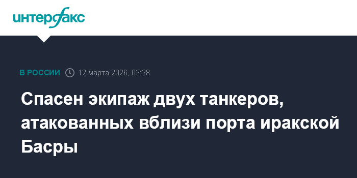Москва. 12 марта. INTERFAX.RU - Генеральный директор иракской портовой компании Фархан аль-Фартуси сообщил телеканалу CNN, что им удалось спасти экипаж двух иностранных нефтяных танкеров, которые подверглись нападению в территориальных водах Ирака.