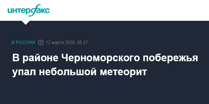 Москва. 12 марта. INTERFAX.RU - Небольшой метеорит, предположительно, разрушился ночью в районе Черноморского побережья России, сообщили утром в четверг в лаборатории солнечной астрономии Института космических исследований (ИКИ) РАН.