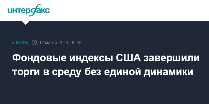 Москва. 12 марта. INTERFAX.RU - Американские фондовые индексы завершили волатильные торги в среду без единой динамики: Dow Jones и S&P 500 снизились, тогда как Nasdaq Composite увеличился.