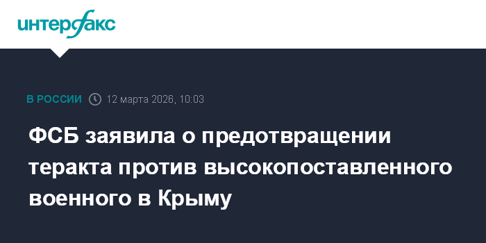 ФСБ заявила о предотвращении теракта против высокопоставленного военного в Крыму