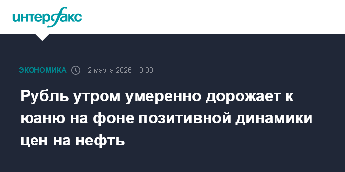Москва. 11 марта. INTERFAX.RU - Китайский юань опускается на Московской бирже при открытии торгов в четверг, рубль умеренно укрепляется на фоне позитивной динамики цен на нефть.