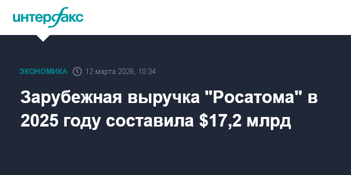 Москва. 12 марта. INTERFAX.RU - Зарубежная выручка "Росатома" в 2025 году составила $17,2 млрд, сообщил глава госкорпорации Алексей Лихачев на дне информирования компании, пишет корпоративное издание "Страна Росатом". Это на 5,2% больше планов компании.