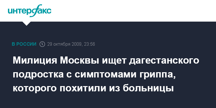 Милиция Москвы ищет дагестанского подростка с симптомами гриппа, которого похитили из больницы
