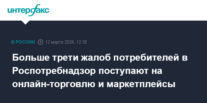 Москва. 12 марта. INTERFAX.RU - Роспотребнадзор отмечает трехкратный рост количества жалоб от потребителей на онлайн-торговлю за последние десять лет, на сегодняшний день около 37% жалоб на сферу торговли приходится на онлайн-продажи и маркетплейсы, сообщил на пресс-конференции начальник Управления федерального государственного надзора в области защиты прав потребителей Роспотребнадзора Олег Прусаков.
