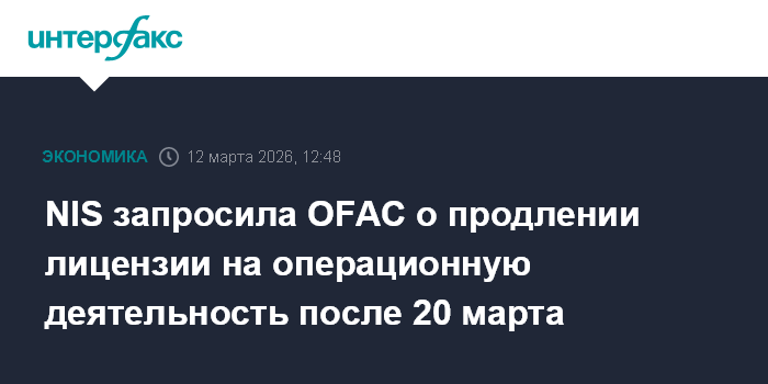 Ранее OFAC продлило NIS лицензию на операционную деятельность до 20 марта. Компания запрашивает ведомство о возможности продолжать работу, пока идут переговоры о продаже её акций.