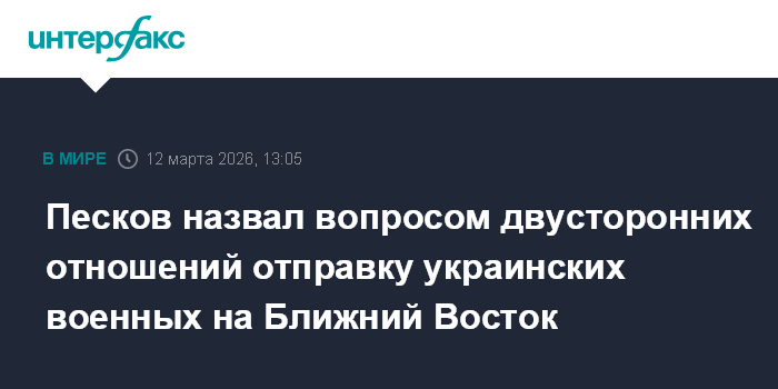 Песков назвал вопросом двусторонних отношений отправку украинских военных на Ближний Восток