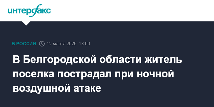 Москва. 12 марта. INTERFAX.RU - Губернатор Белгородской области Вячеслав Гладков сообщил об одном пострадавшем в результате воздушных атак ВСУ на Шебекинский округ в ночь на 12 марта.