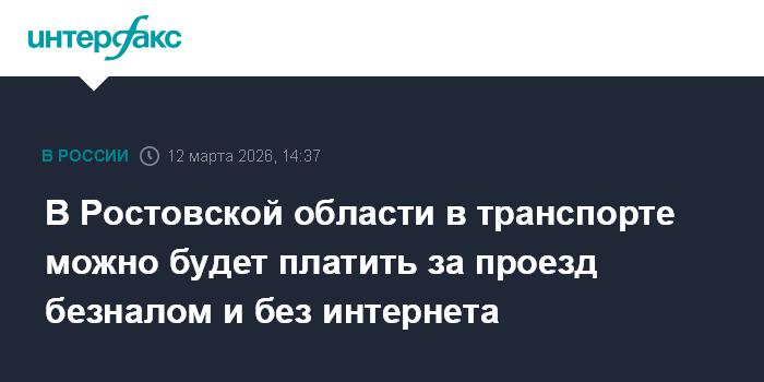 Москва. 12 марта. INTERFAX.RU - В Ростовской области с 1 апреля в общественном транспорте появится возможность платить за проезд безналом и при отсутствии интернета, сообщила журналистам заместитель губернатора - министр транспорта Алена Беликова.