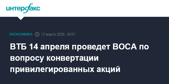 ВТБ 14 апреля проведет ВОСА по вопросу конвертации привилегированных акций