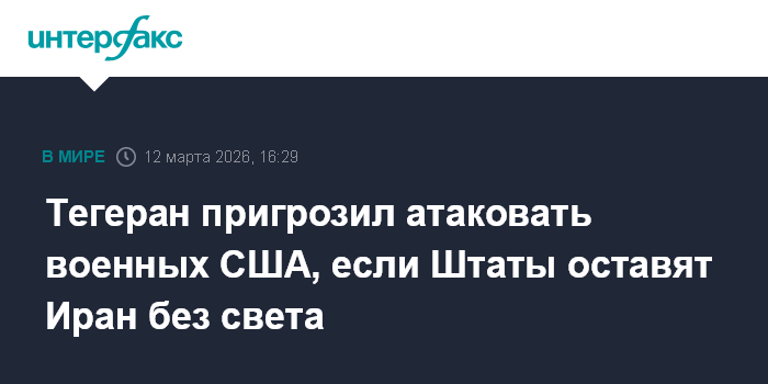 Тегеран пригрозил атаковать военных США, если Штаты оставят Иран без света