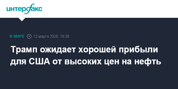 Москва. 12 марта. INTERFAX.RU - США добывают много нефти и потому хорошо заработают в период высоких цен на этот энергоресурс, заявил в четверг американский президент Дональд Трамп.