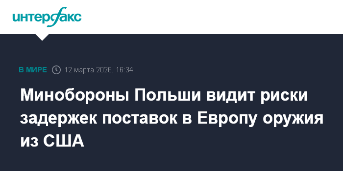 Москва. 12 марта. INTERFAX.RU - Существует серьезная угроза задержек в поставках американского вооружения, в первую очередь, зенитных ракет, Европе из-за конфликта на Ближнем Востоке, заявил журналистам заместитель премьер-министра, министр национальной обороны Польши Владислав Косиняк-Камыш. Об этом сообщают польские СМИ.