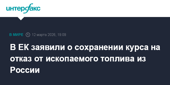 В ЕК заявили о сохранении курса на отказ от ископаемого топлива из России