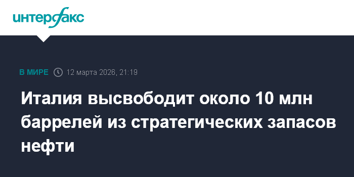Москва. 12 марта. INTERFAX.RU - Италия высвободит около 9,9 млн баррелей нефти из стратегических запасов в рамках усилий, прилагаемых странами-членами международного энергетического агентства (МЭА) для преодоления нынешнего энергетического кризиса, сообщает итальянское министерство окружающей среды и энергетической безопасности.