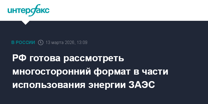 РФ готова рассмотреть многосторонний формат в части использования энергии ЗАЭС