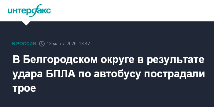 Москва. 13 марта. INTERFAX.RU - В Белгородском округе дрон ударил по пассажирскому автобусу на дороге Никольское - Таврово, пострадали три человека, сообщил губернатор Белгородской области Вячеслав Гладков.