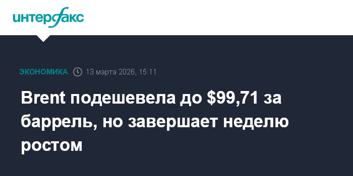 Brent подешевела до $99,71 за баррель, но завершает неделю ростом