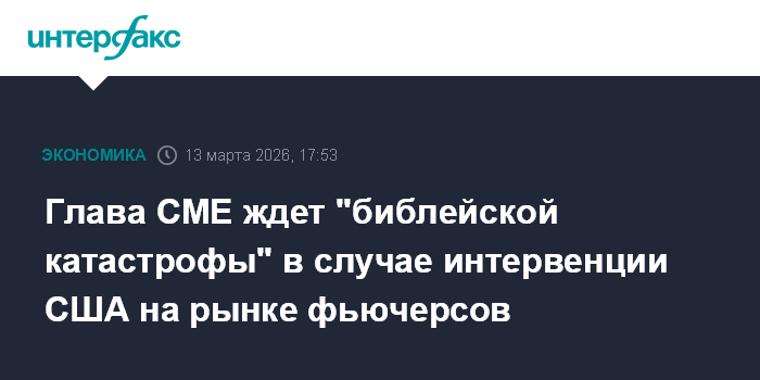 Глава CME ждет "библейской катастрофы" в случае интервенции США на рынке фьючерсов