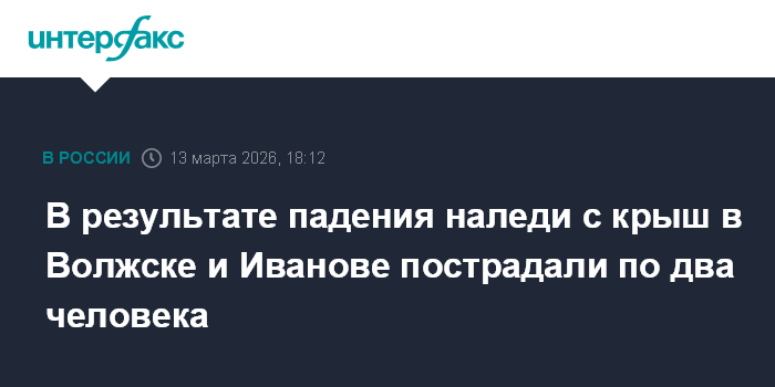 Москва. 13 марта. INTERFAX.RU - В Волжске и Иванове в общей сложности четыре человека получили травмы в результате схода с крыш снега и наледи.