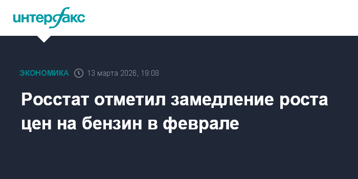 Москва. 13 марта. INTERFAX.RU - В России в феврале 2026 года потребительские цены на бензин выросли к январю на 0,61% после роста на 1,35% в январе, сообщил Росстат.