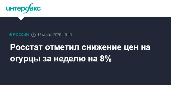 По данным Росстата, с 3 по 10 марта огурцы подешевели на 8% (на 7,1% с 25 февраля по 2 марта).