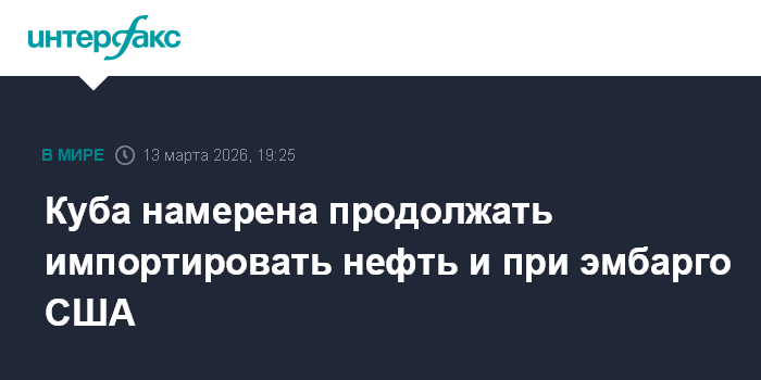 Москва. 13 марта. INTERFAX.RU - Куба планирует продолжать импорт нефти, имеющий ключевое значение для экономики страны, даже в условиях эмбарго со стороны США, заявил в пятницу кубинский президент Мигель Диас-Канель.