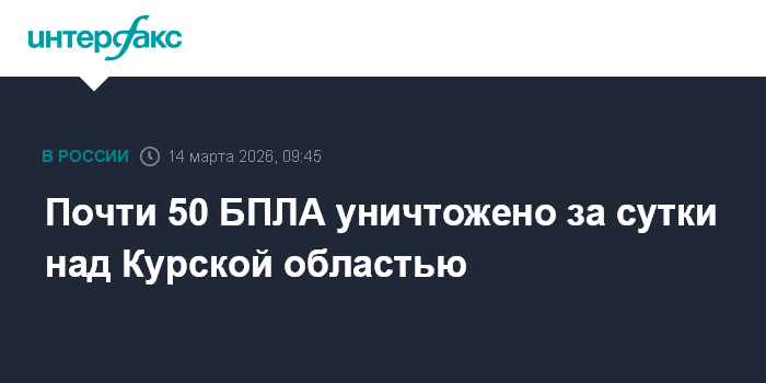 Почти 50 БПЛА уничтожено за сутки над Курской областью