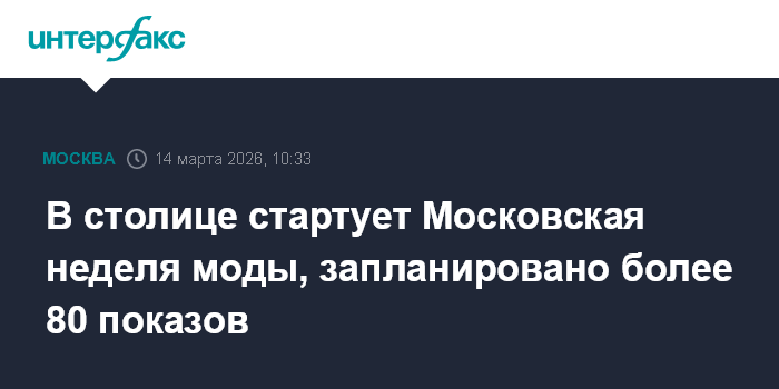 С 14 по 19 марта состоится свыше 80 модных показов, сообщила Сергунина. Вместе с профессионалами в показах примут участие студенты профильных учебных заведений, в том числе Московского художественно-промышленного института, Института искусств Российского государственного университета имени А.Н. Косыгина, Школы дизайна Национального исследовательского университета "Высшая школа экономики" и Национального института дизайна.