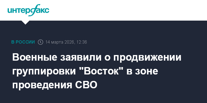 Москва. 14 марта. INTERFAX.RU - Подразделения группировки войск "Восток" продвигаются в глубину украинской обороны, группировки "Север", "Запад", "Центр" и "Южная" за сутки улучшили положение в зоне СВО, заявили в Минобороны России в субботу.
