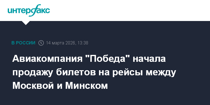 Москва. 14 марта. INTERFAX.RU - Авиакомпания "Победа" с 20 апреля возобновляет регулярные рейсы из Москвы в Минск, билеты уже выставлены в продажу, сообщила пресс-служба компании в субботу.