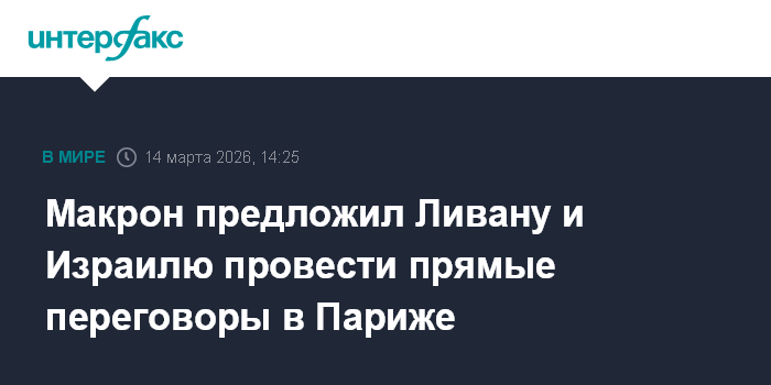 Москва. 14 марта. INTERFAX.RU - Франция готова предоставить площадку для переговоров между Израилем и Ливаном, заявил президент Франции Эммануэль Макрон.