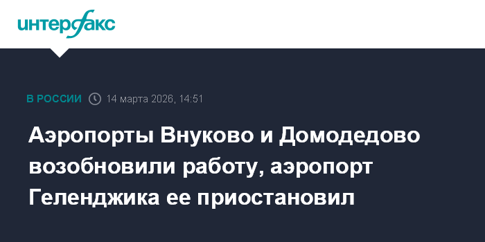 Аэропорты Внуково и Домодедово возобновили работу, аэропорт Геленджика ее приостановил
