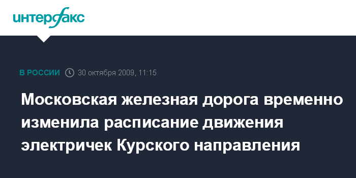 Московская железная дорога временно изменила расписание движения электричек Курского направления