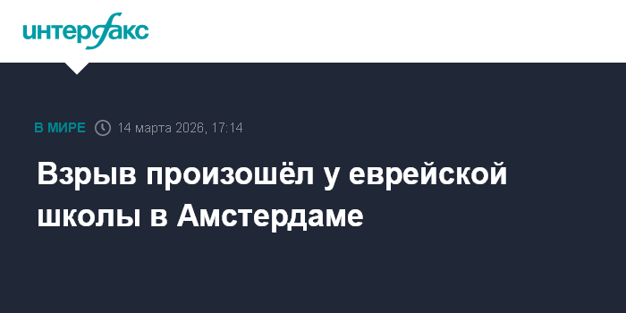 Москва. 14 марта. INTERFAX.RU - Взрыв произошел возле еврейской школы в Амстердаме, полиция ищет преступников. Как отмечает Associated Press, злоумышленник снимал свои действия на видео.