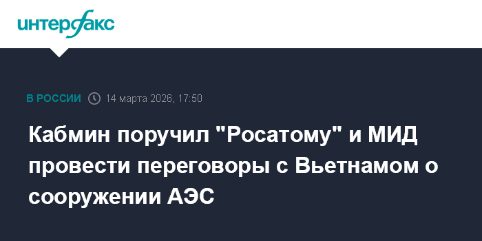 Москва. 14 марта. INTERFAX.RU - Правительство России одобрило проект соглашения о сотрудничестве с Вьетнамом в сооружении АЭС на территории республики, соответствующее распоряжение опубликовано на сайте кабинета министров.